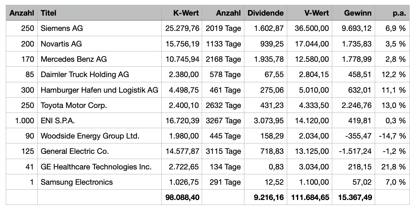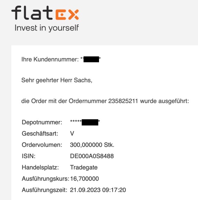 Das ist der 11. Verkauf in 9 Monaten für 2023. Eigentlich wäre es jetzt auch genug – aber dieses Angebot für HHLA nahm ich an weil das kein Basis Investment für mein Portfolio war.