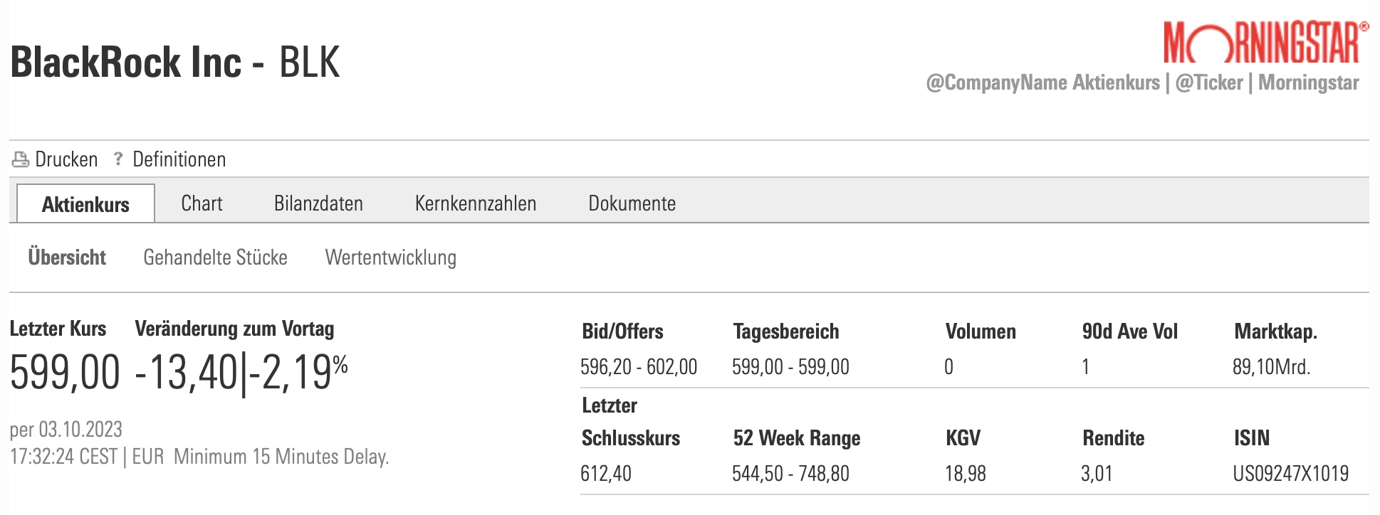 Ich habe ja einige europäische Banken verkauft oder globale Bank-Depotpositionen zurückgestutzt. Nachdem ich auch iShares nutze und BlackRock einer der größten Vermögensverwalter ist kommt der in mein Portfolio. 3% Brutto Dividendenrendite ist auch für mich ok.
