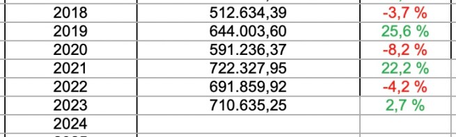 Wenn ich von 15.367,49 EUR Gewinn in 2023 die langfristigen Dividenden von 9.216,16 abziehe bleiben noch Kursgewinne von 6.151,33 übrig. Dieser Betrag wurde bei einer positiven E/A-Bilanz als Sparpläne und zum jährlichen Investmentaufbau verwendet.