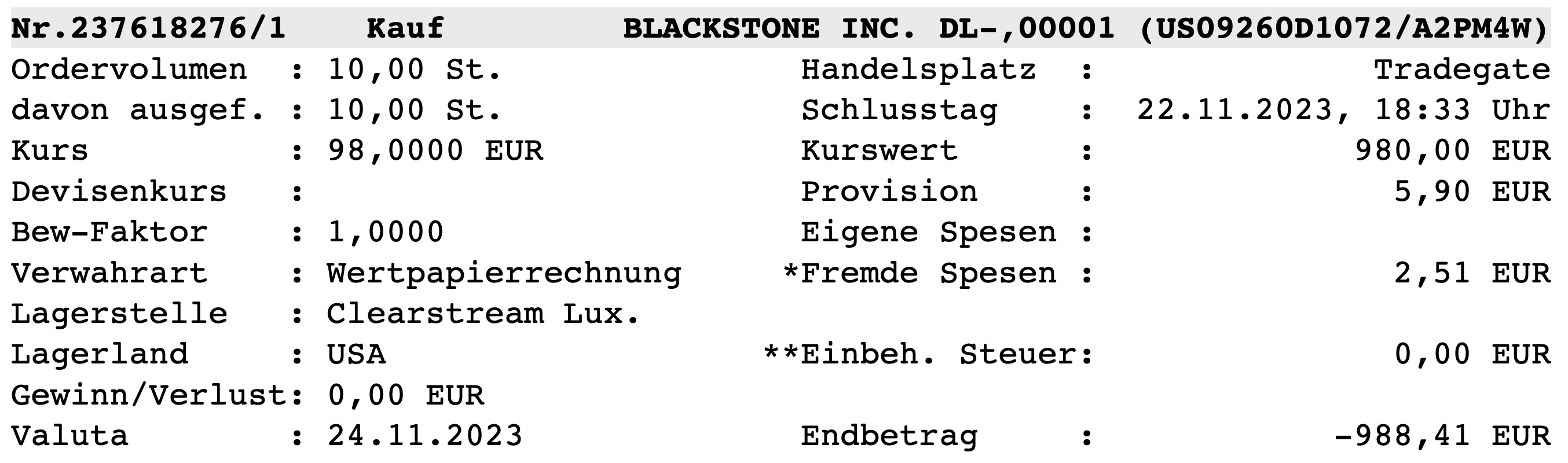 Kauf einer Startposition Blackstone US09260D1072: