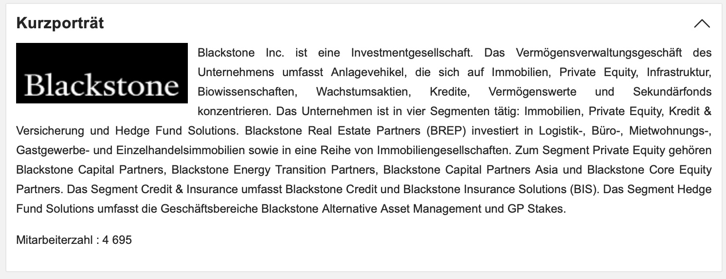 Nach Blackrock kam nun Blackstone ins Depot, einer der größten US-Finanzverwalter 🇺🇸