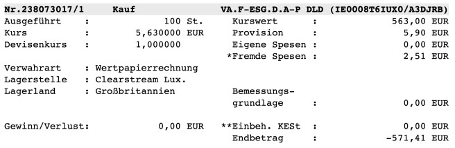 Den zuletzt geplanten ETF habe ich mit einer Einzelposition gestartet: