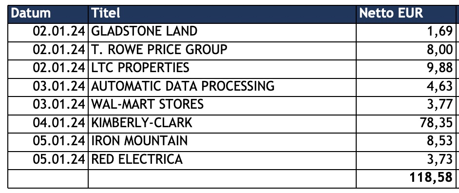 Dividenden Einkommen Kalenderwoche 01 / 2024: