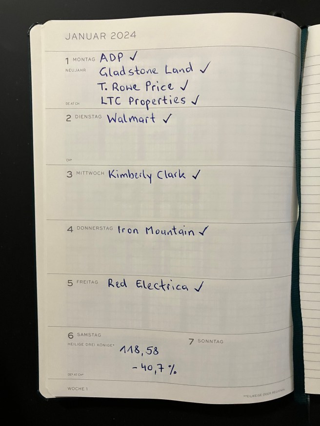 Alexander kauft wie Matthias (von Getmad) sehr regelmäßig nach. Das ist sehr effektiv – wenig handeln aber noch nachkaufen. Mal schauen was 2024 bringt, bisher sind wie im Dezember auch im Jänner nur meine monatlichen Sparpläne erfüllt worden.