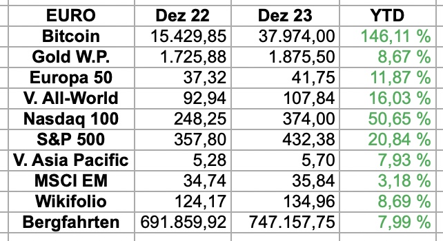 Mr. Market läuft aktuell etwas unrund – mal sehen wie der Jahresstart bzw. der Jänner 2024 verlaufen wird 😉