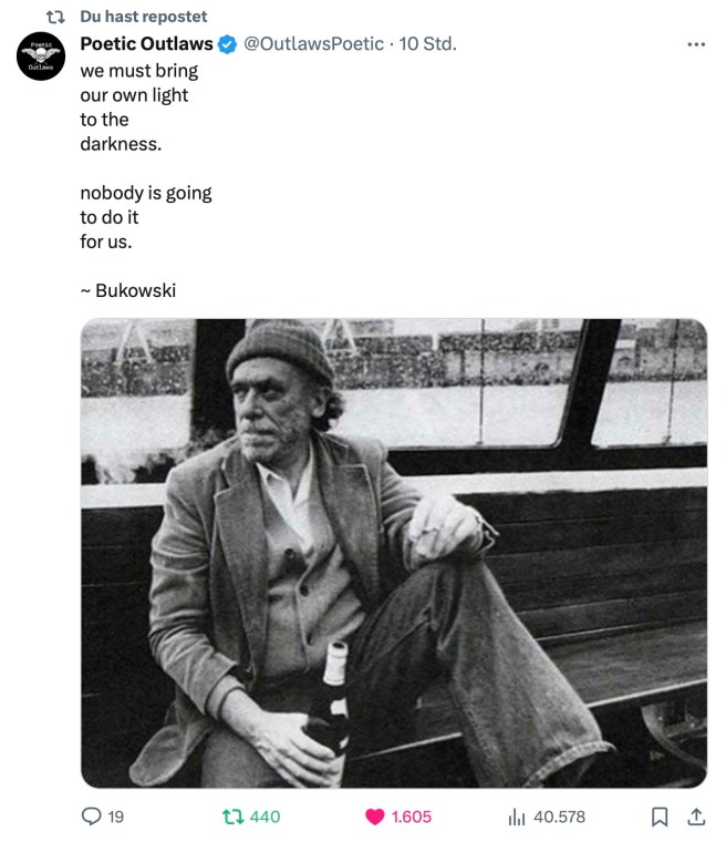 Ich schließe diese Woche nun mit einer Lebensweisheit von Charles Bukowski, über die man Nachdenken sollte 📚