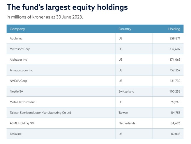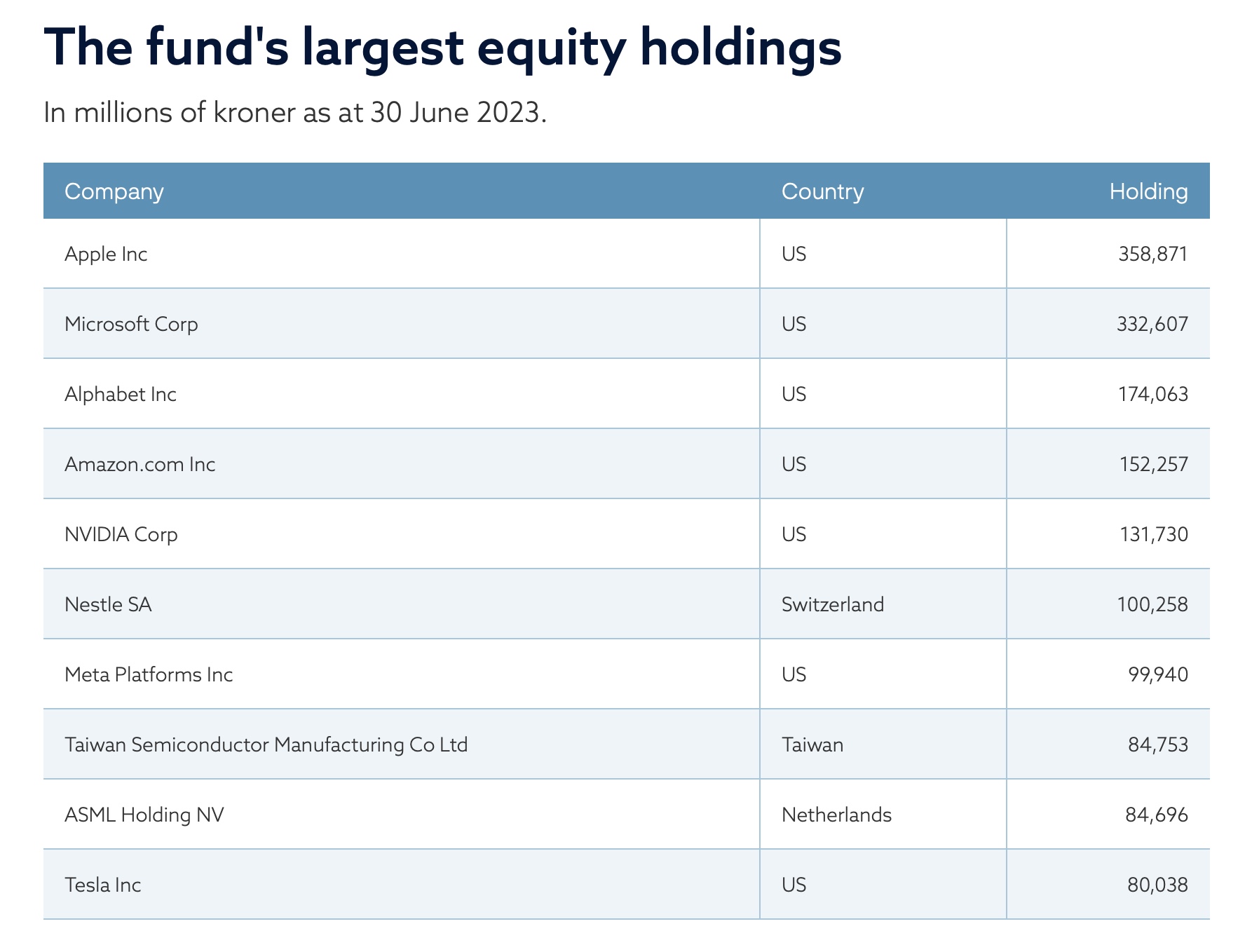 Oder die Top 10 Unternehmen des Norwegischen Staatsfonds…