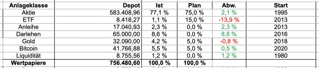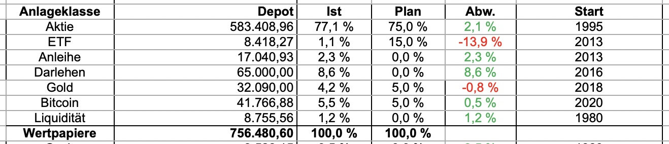 mehr hast Du Dich nicht getraut bis auf diverse ETF Anteile.