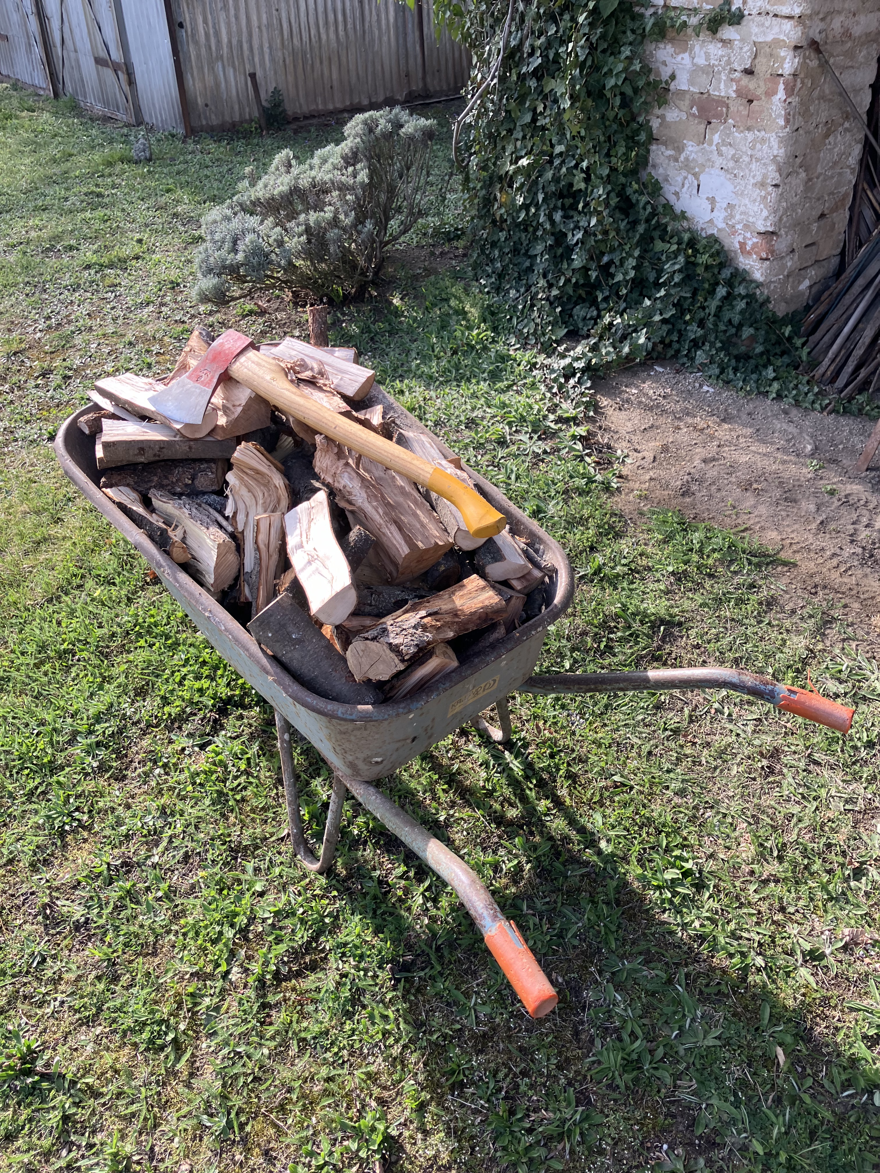 Das frühlingshafte Wetter bringt nun wieder Aktivitäten im Garten – z.B. Holz schneiden, hacken und einlagern 🪓