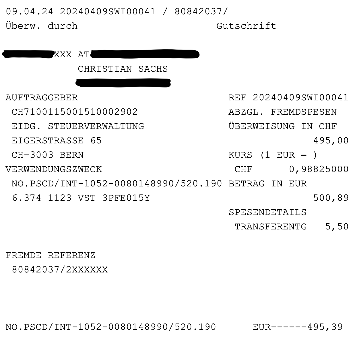 Apropos Schweiz – Mein Antrag auf die Rückerstattung 2023 über 495 CHF ist diese Woche auf meinem Giro Konto eingetroffen 🇨🇭
