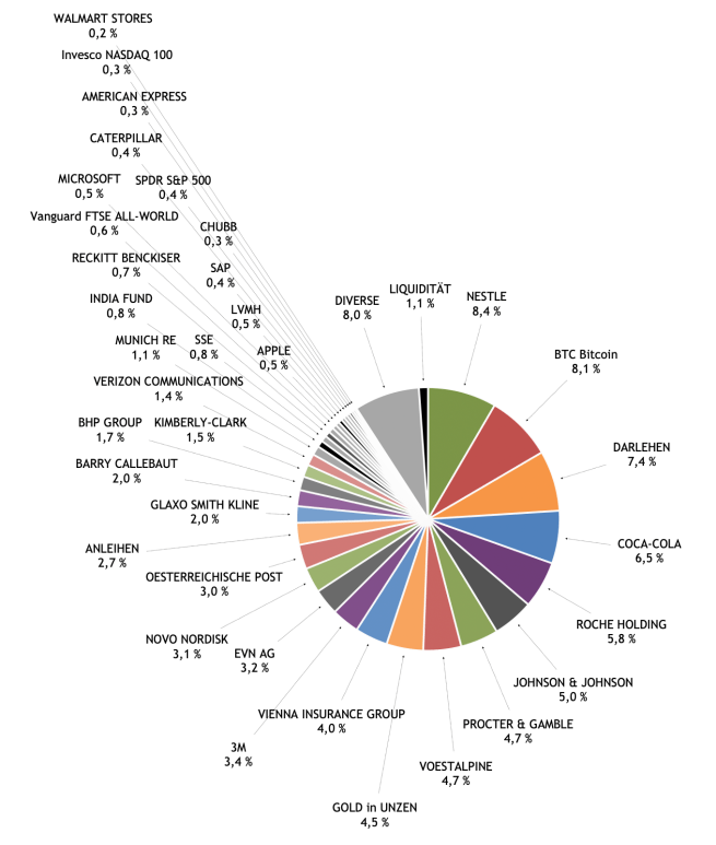 Die Liquidität bleibt positiv (Bausparen) und Diverse sind nur mehr 8% in Beobachtungspositionen.