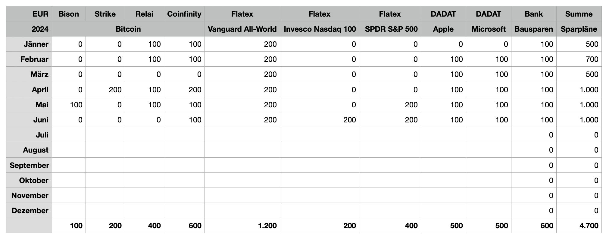 Im Juli ist der sehnsüchtig erwartete Abschluss des Bausparvertrages. Aktuell sind die Verrechnungskonten leer (kein Margin Kredit) und ich mag keine ungelegten Eier für die 8 TEUR machen. Sonderangebote bei Aktien sehe ich kaum, die Indexe sind am ATH und mein 3. und 4. Quartal wird mein Einkommen schrumpfen gegenüber dem 1. Halbjahr.