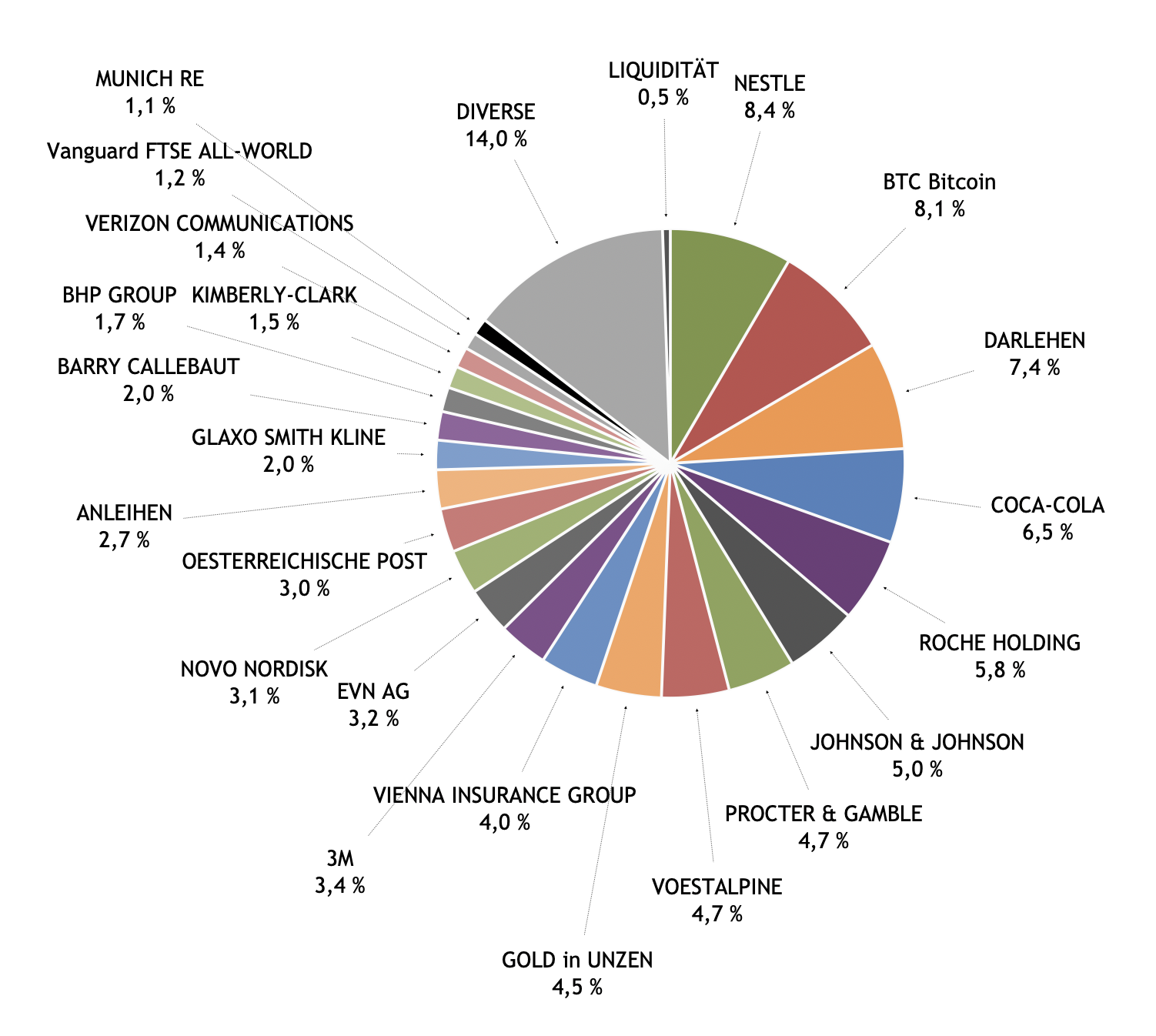 Danke für dein Feedback. Es stimmt, 40% bei Buffett in eine Position wäre nicht mein Ding 😉 Aber es hat mir schon gezeigt dass meine Begrenzung auf 5% für die größten Postionen nicht sein muss – also habe ich für mich mal auf 10% erhöht und Nestlé, Bitcoin und Coca-Cola in 23/24 ordentlich aufgestockt.