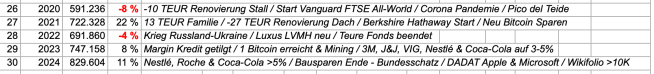 Nein, ich hatte nicht zum Tiefpunkt gekauft aber diverse Sparpläne sind weitergelaufen. Mitte 2023 folgte eine seitwärts Bewegung bei ca. 25 TEUR und damit entschied ich mich auf einen Wholecoin aufzustocken. Eine glückliche Entscheidung im Nachhinein 🍀