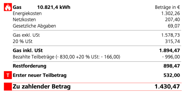 Bis jetzt kenne ich aber nur die Gasreduktion – Abrechnung im Vergleich: