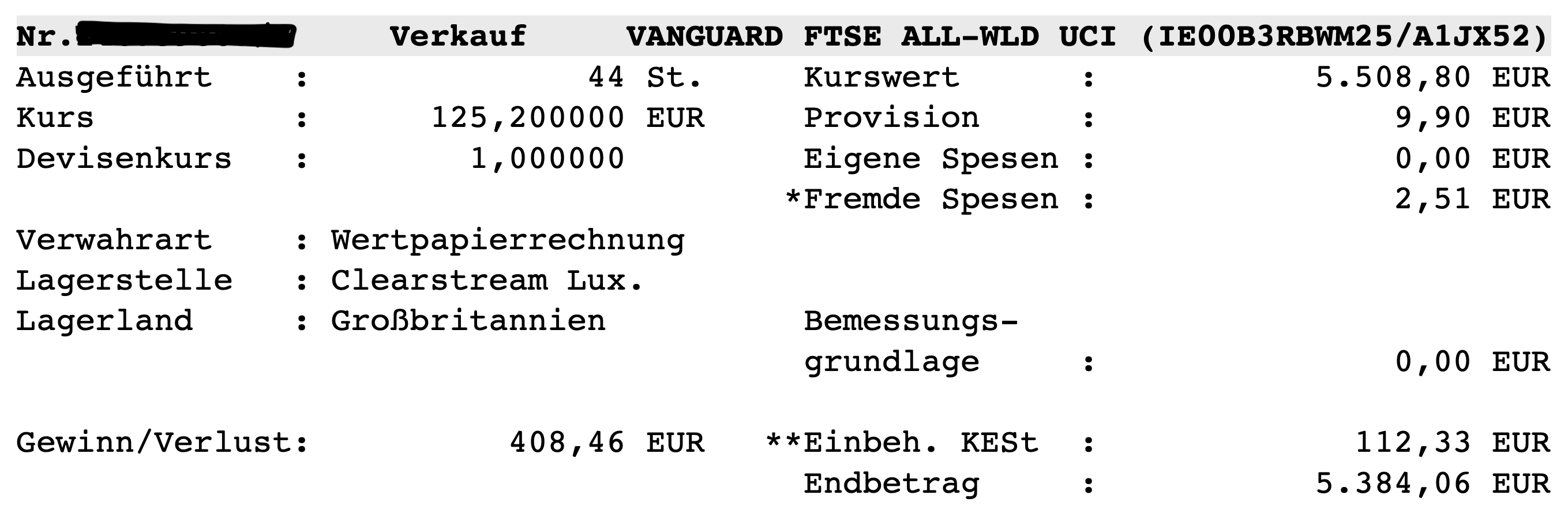 Die Rückzahlung eines Darlehen hat sich nun von Sept. 2024 auf Sept. 2025 verschoben. Daher habe ich mich entschlossen mein Aktien Sparschwein, den Vanguard All-World ETF zu halbieren…