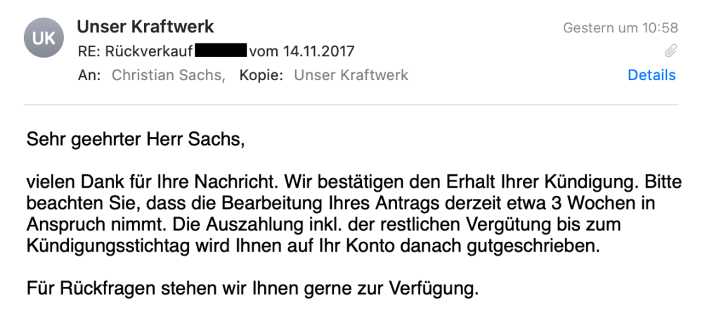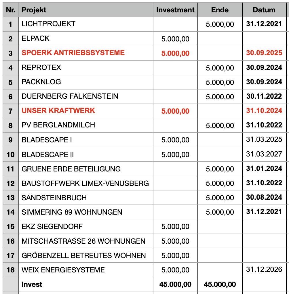 Die restlichen 5 TEUR werden dann vom „Unser Kraftwerk“ getilgt…