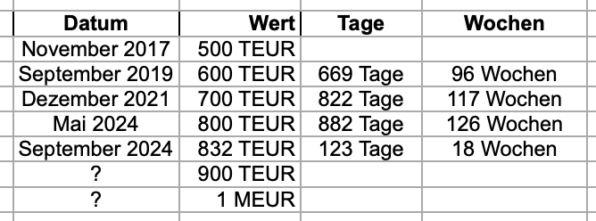 Nachdem ich wieder ein „kleines regelmäßiges Einkommen“ habe werde ich wohl in Zukunft mehr auf die Performance als auf die Dividenden achten. Beides ist wichtig aber die Meilensteine von 100 TEUR Steigerung und neue ATH’s helfen um die Inflation und Entwertung des Fiat Geldes abzufedern 🇪🇺