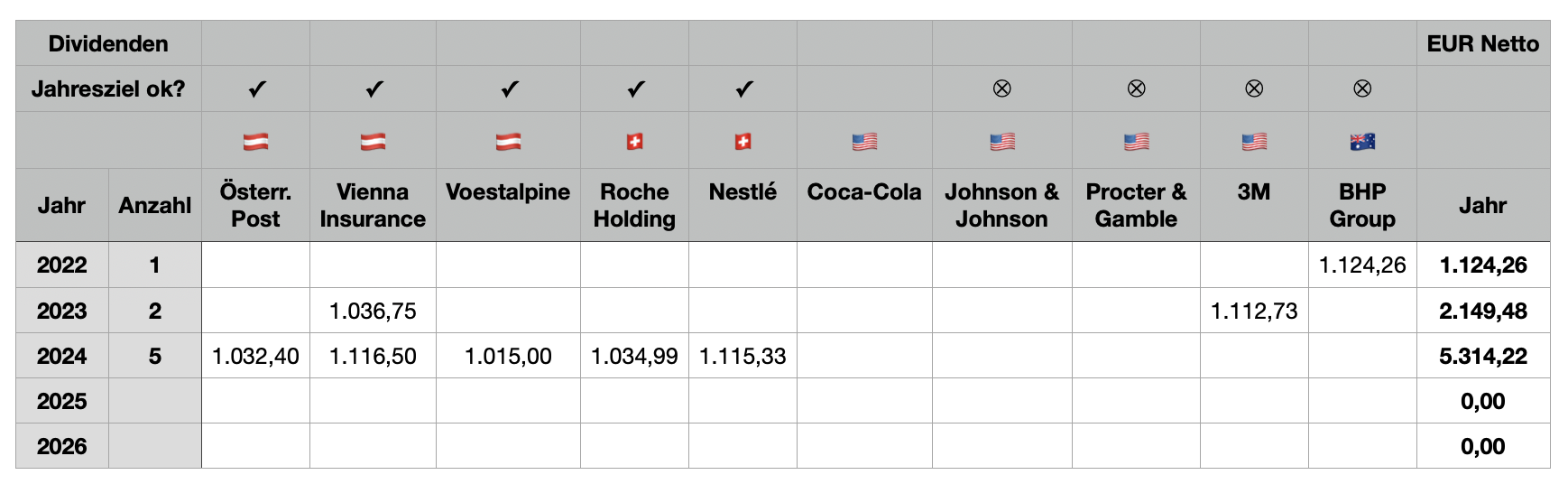 Aber 1 TEUR Netto Dividenden zeigen mir dass die Positionen groß genug für mein Portfolio sind…