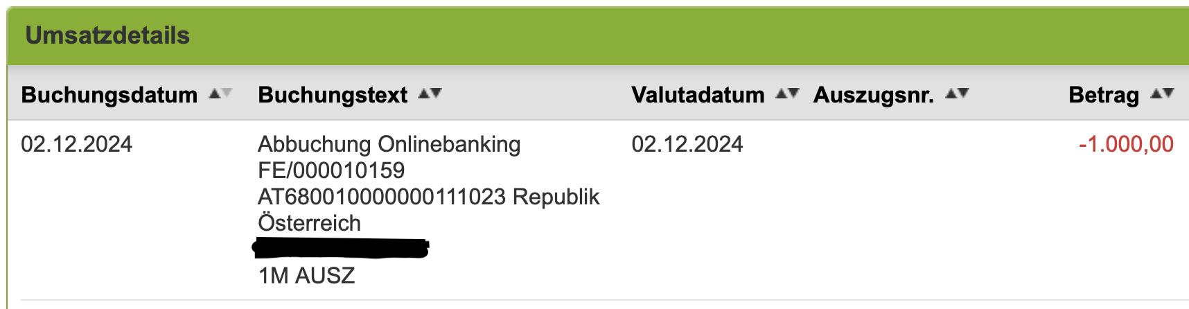Meine Motivation ist nun jedes Monat ein kleines Einkommen vom Staat zu bekommen. Um das Spiel Anfang Jänner zu starten wanderte 1 TEUR von meinem Girokonto (Notgroschen) in die Liquidität.