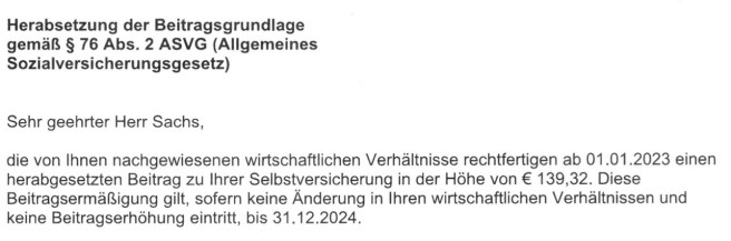 Die neue Berechnung mit den Werten von 2023 wurde nun von der Österreichischen Gesundheitskasse nun für den Zeitraum 2025-2026 mit 165,44 EUR monatlich festgelegt…