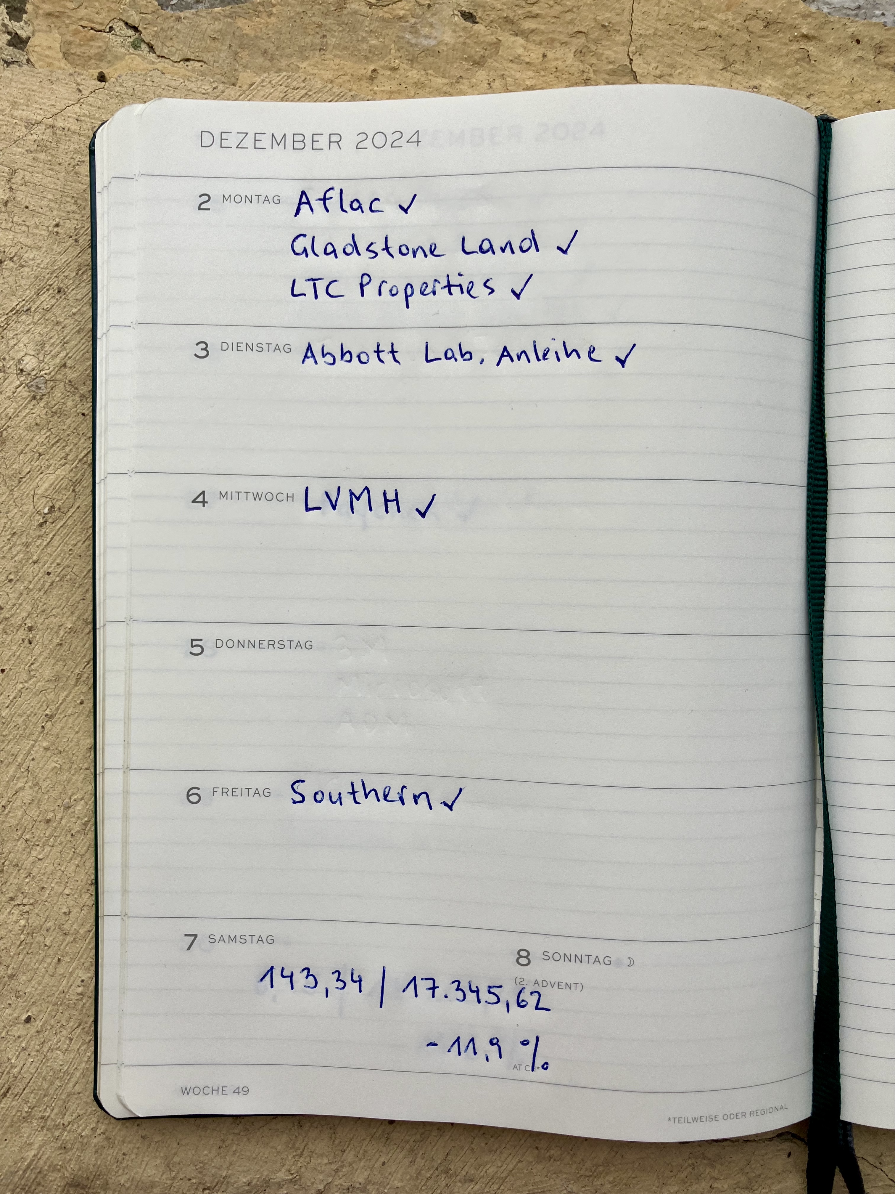 Die geplanten Aktiendividenden im Dezember, ich nenne die letzte Woche lieber 53 / 2024 als 1 / 2025 ☺️