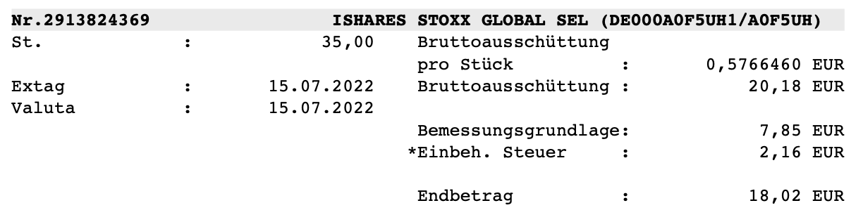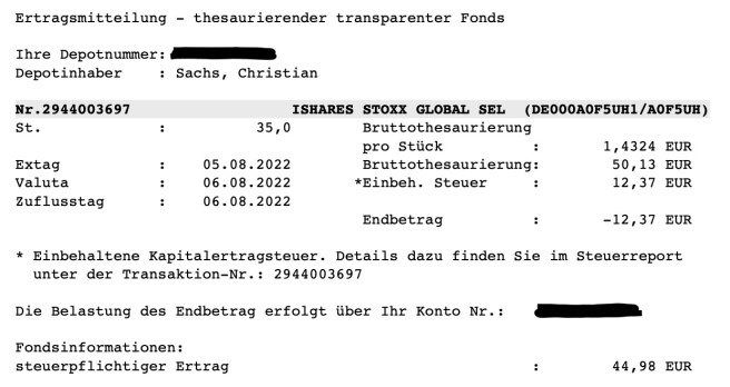 ich freue mich über die Ausschüttung im Juli 2022 und dann folgte unerwartet im August eine steuerliche Abbuchung vom Verrechnungskonto…