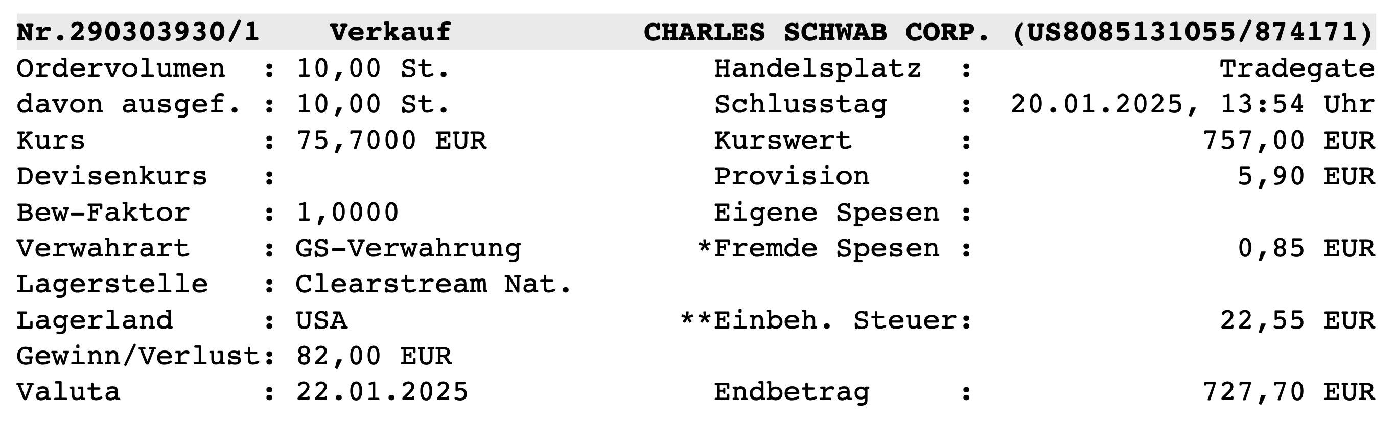 Charles Schwab ein Traditionsunternehmen als Broker. Aktuell ca. +10% aber ich werde auch dieses Unternehmen nicht mehr nachkaufen wollen.