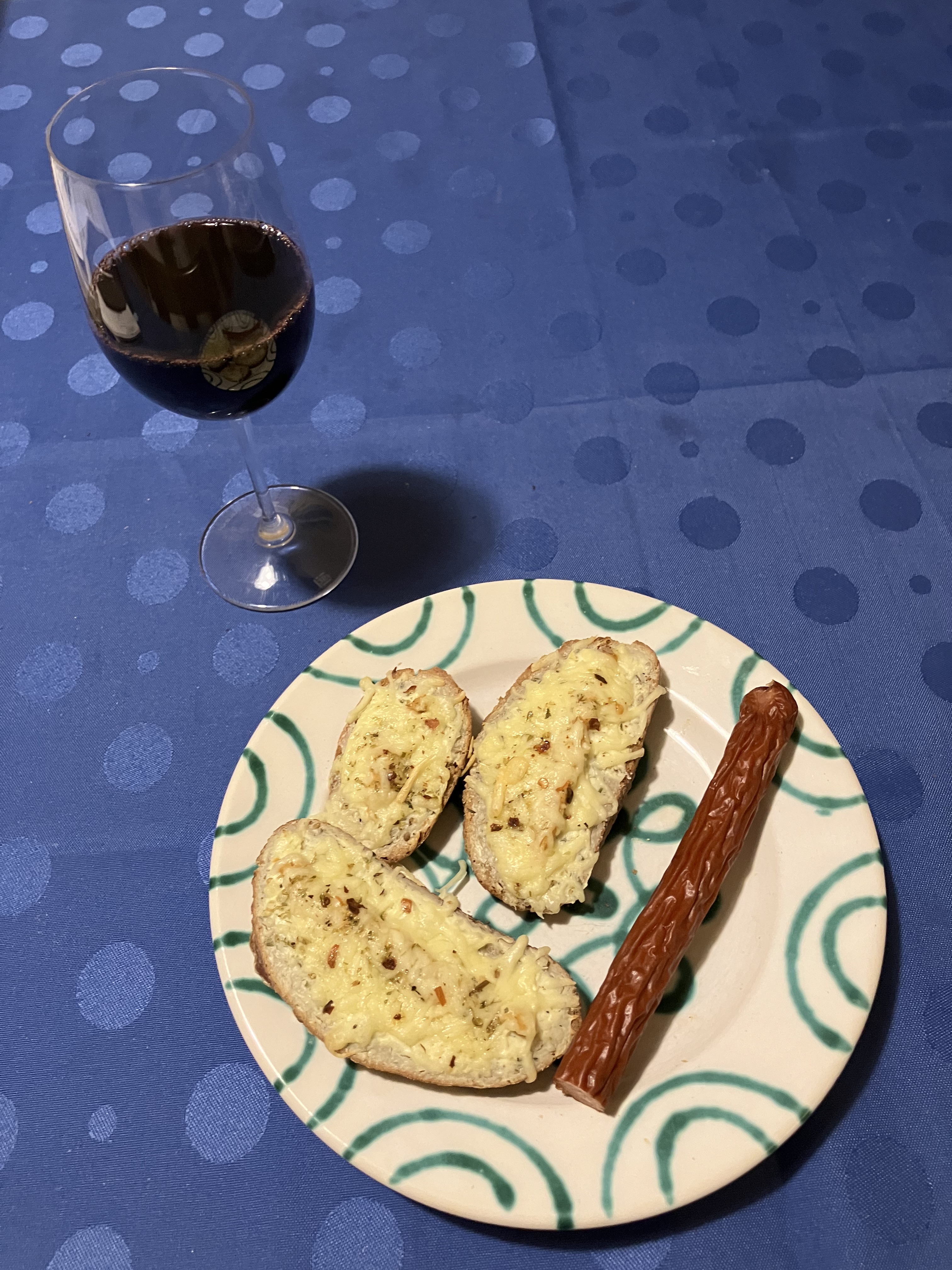 und für das letzte argentinische Glas Rotwein gab es 1/2 Cabanossi mit überbackene Käsebrote 🇦🇷