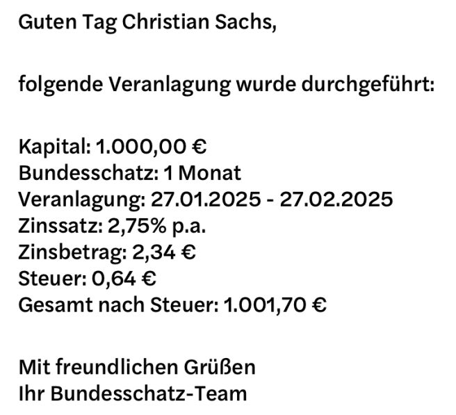 1 TEUR wanderten heute vom Notgroschen in die Liquidität als Bundesschatz bis Ende Februar 🇦🇹
