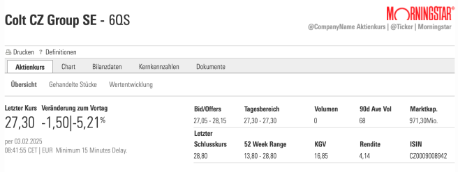 Zwei österreichische Unternehmen wobei ich in Vienna Insurance investiert bin. Zwei lokale Banken, CEZ als Versorger und zwei namhafte US-Titel für Zigaretten und Colt CZ Group für Waffen.