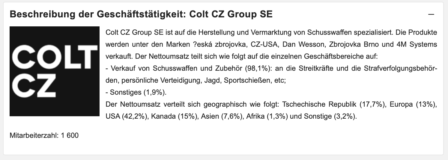 - Mit dem Namen Colt und fast 50% US-Anteil beim Geschäft steht man global gut da