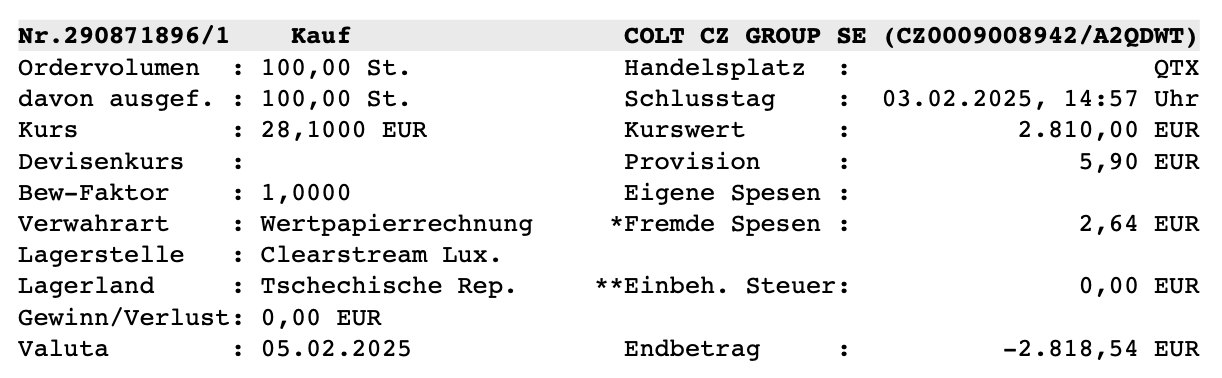 Gedämpft hat meine Freude dass es wohl 15% Quellensteuer auf Tschechische Dividenden geben wird. Der Spread ist mit sehr geringem Handel bei ca. 4%!