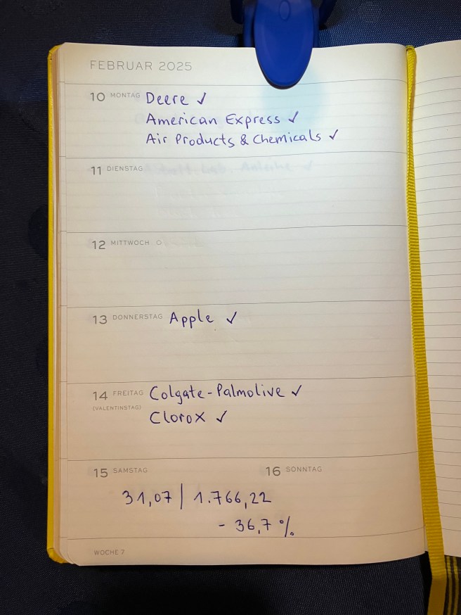 Persönlich werde ich jetzt das Monat eher ruhig ausklingen lassen. Am Montag kommen fix die Sparpläne für Apple, American Express, Microsoft und Walmart dazu. Dann gilt der Fokus auf mein Girokonto / Notgroschen / Rechnungen bezahlen. Vor dem Monatsende kommen 1 TEUR Bundesschatz und das kann ich mal flexibel für März mitnehmen ✅