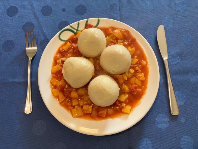 Diese Woche habe ich Letscho aus einem großen gelben Paprika für zwei mal Mittagessen zubereitet. Einmal als Beilage zu Selchfleischknödel…