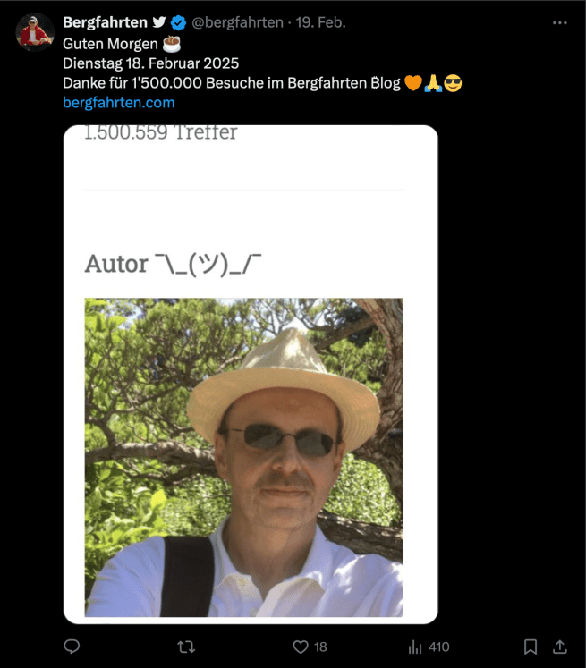 Vorab ein Dankeschön an meine Leser für 1,5 Mio. Besuche in meinem Bergfahrten ₿log 🙏