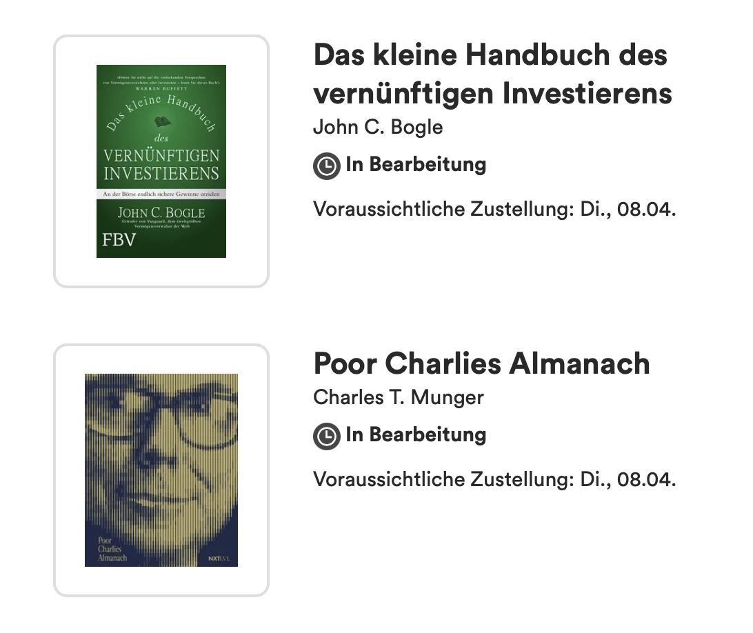 Danke für die Buchempfehlungen! Der Munger steht hier jetzt auch auf der Liste.