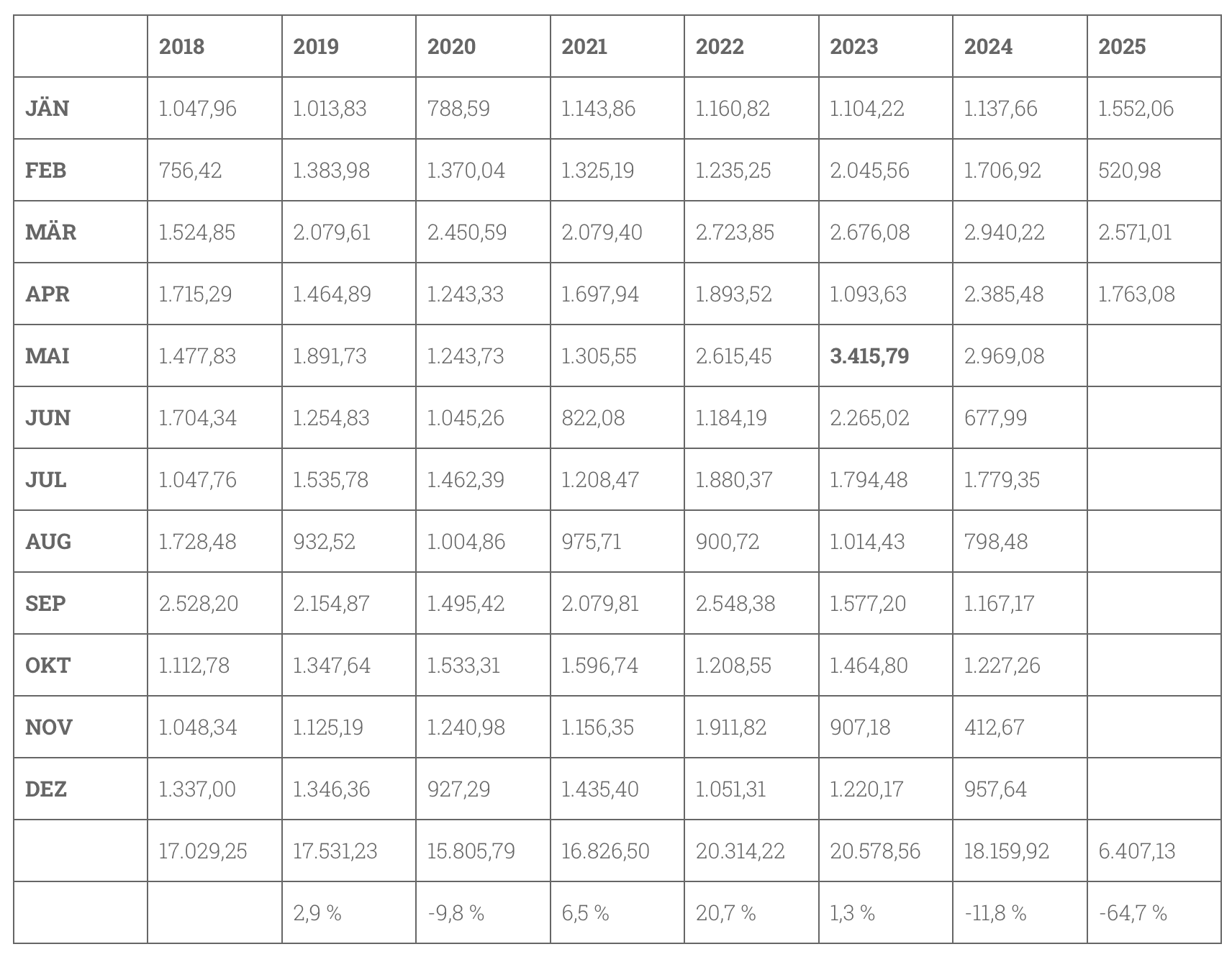Historisch war bisher der Mai 2023 mit 3.415,79 EUR netto das ATH…