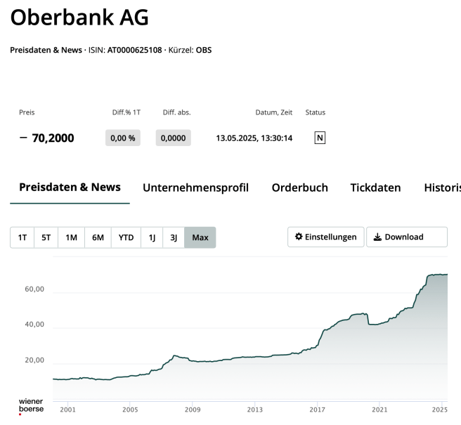 In meiner Watchlist verbliebenen ist aber die Oberbank – wegen deren Langfristchart und einem guten Management 🇦🇹
