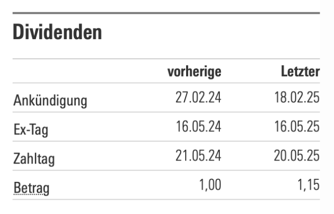 Achja, die HV war gestern am 13. Mai und die jährliche Dividenden ist somit in den nächsten Tagen fällig: