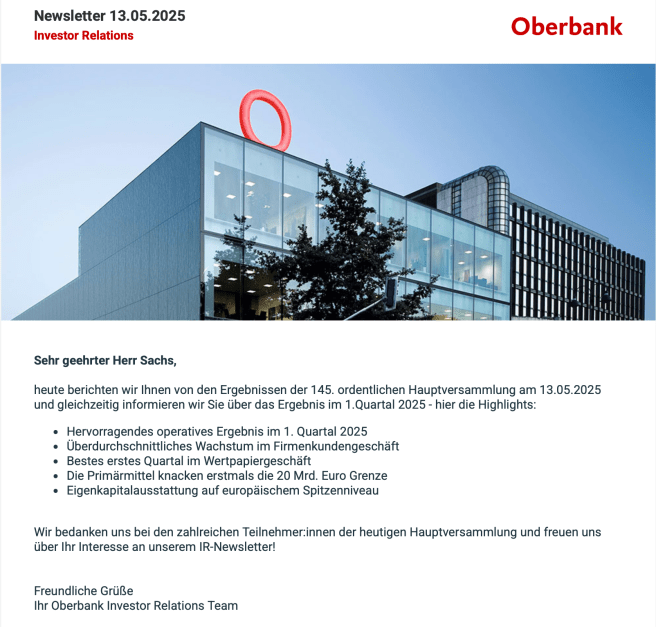 Bei Investor Relations hatte ich mich reserviert und ein paar Stunden später die ersten Informationen erhalten 👍