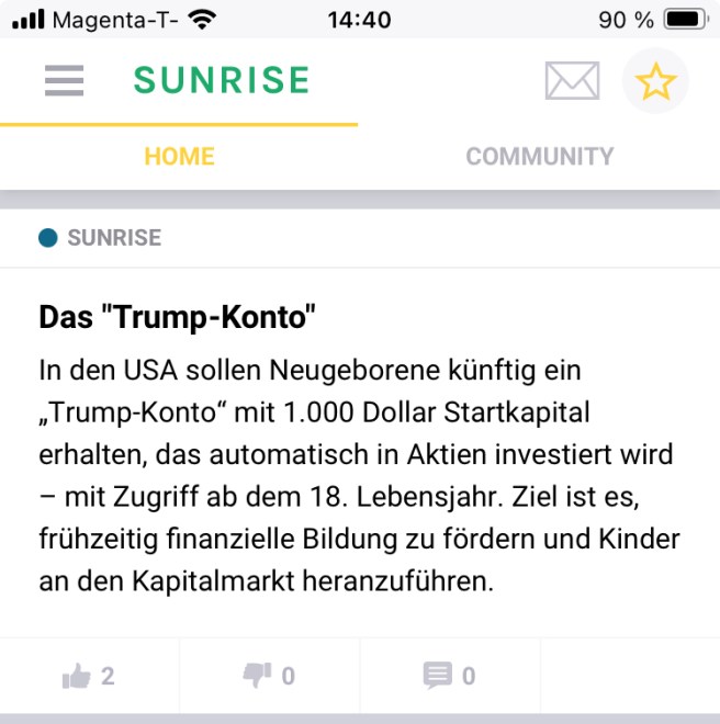 Als Persönlichkeit halte ich nicht allzu viel von Donald Trump – aber gelegentlich trifft er simpel und einfach den Nagel auf den Kopf. Abgesehen davon würde es durchgeführt werden, bleibt er sicher positiv in Erinnerung! Kein europäischer Experte hatte bisher betreffend Finanzbildung und Basis für die Jugend einen annähernd sinnvollen Vorschlag…