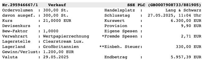 Trotzdem habe ich noch eine „mittelgroße“ Position nun verkauft. Die SSE wäre wohl eher eine typische Trading Aktie – Käufe von 17-18 EUR und Verkäufe bei 21-23 EUR. Das passt nicht in mein Geschäftsmodell und das sind eben die Kursschwankung in den letzten Jahren.