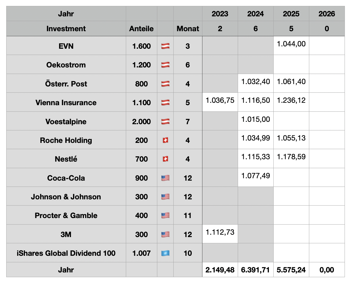 Mit dem Mai Abschluss kam auch der 5. Eingang >1 TEUR für 2025 in meine Bücher: