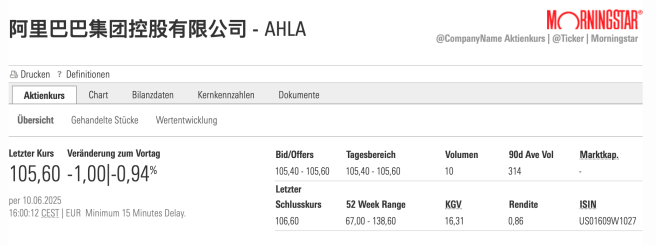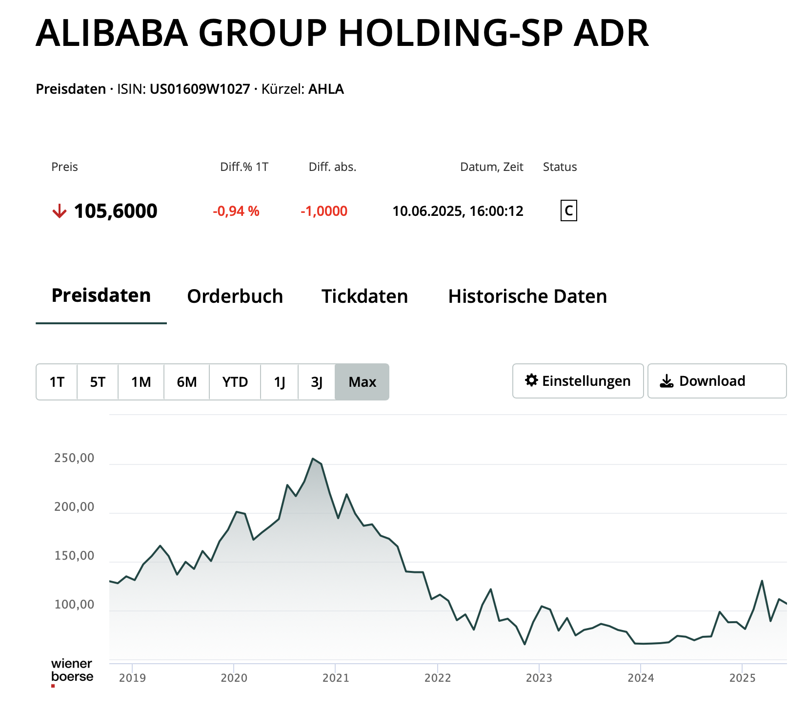 es gibt wie Herbert schreibt zumindest 2 angebotene ISIN für Alibaba. Habe meine Sichtweise dort erklärt. Mein Börsenplatz ist/war in dem Fall Wien.