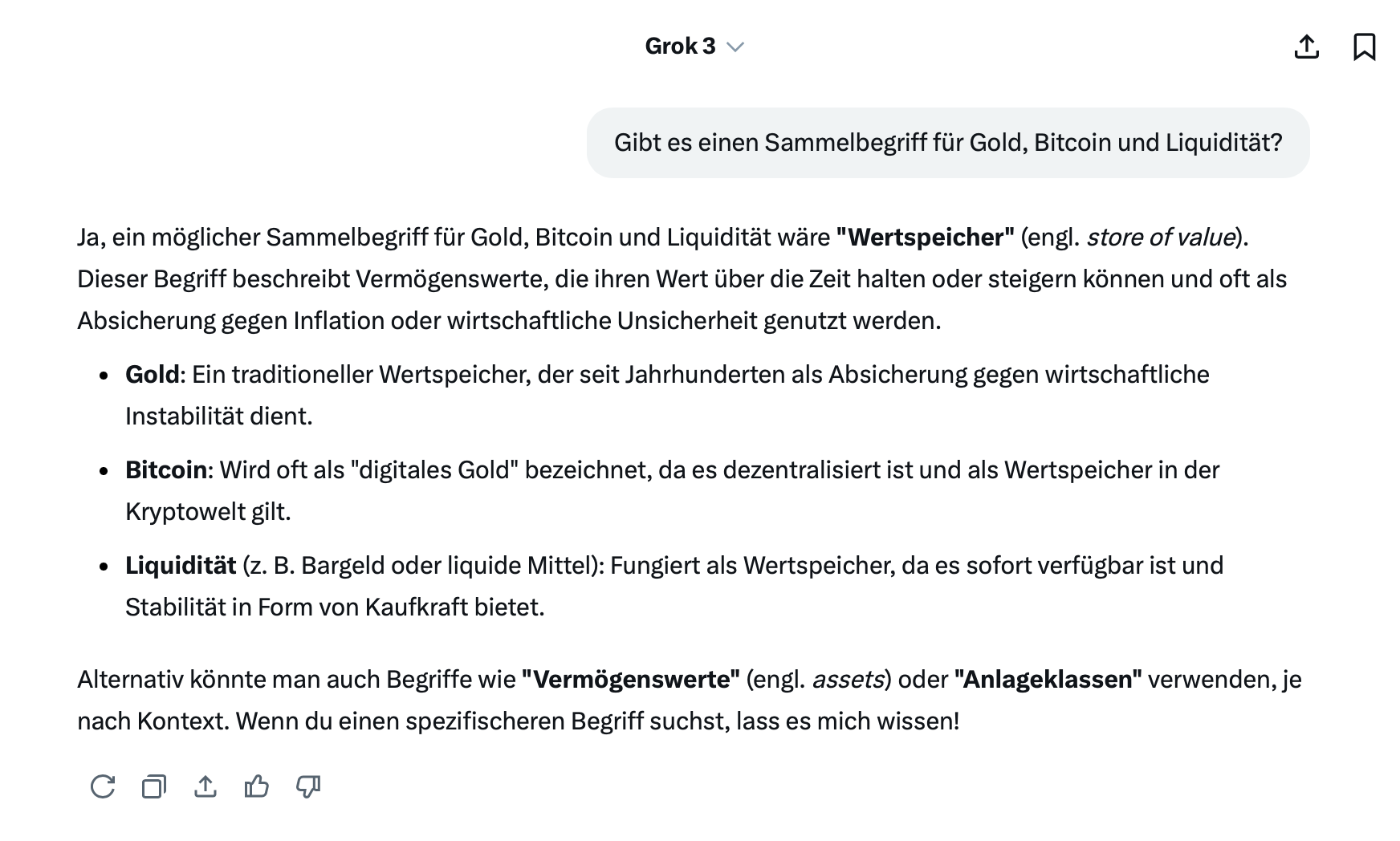 Dann bleibt eben Gold, Bitcoin und Liquidität als Überbegriff Wertspeicher übrig: