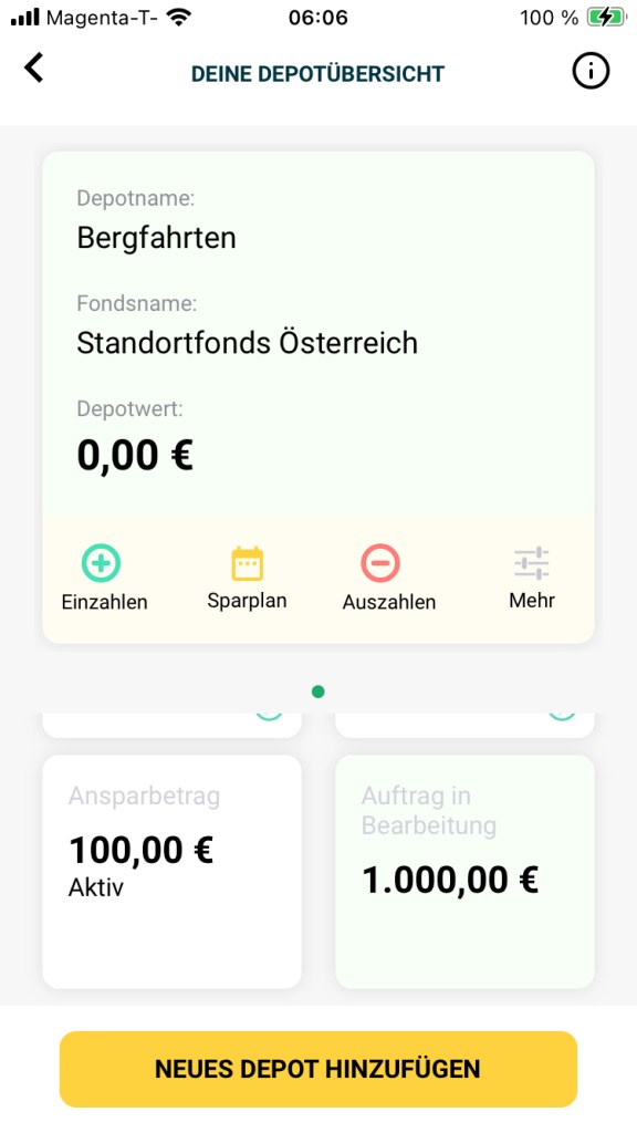 Das neue Depot (Raiffeisen) ist noch in Arbeit, 1. Kaufauftrag und Sparplan läuft bereits:
