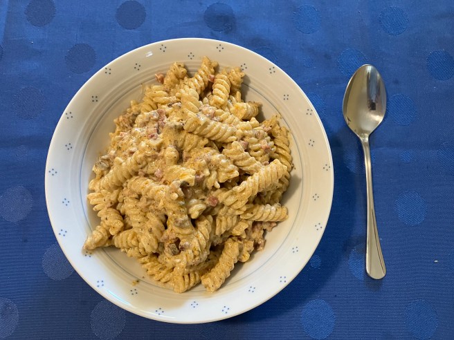 Für das Mittagessen fand ich Speckwürfel in meinem Kühlschrank – also diese mit Nudeln 👨🍳