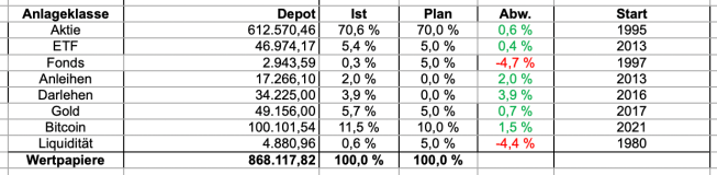 Daher fasse ich das diesmal zusammen – die Einzelpositionen: