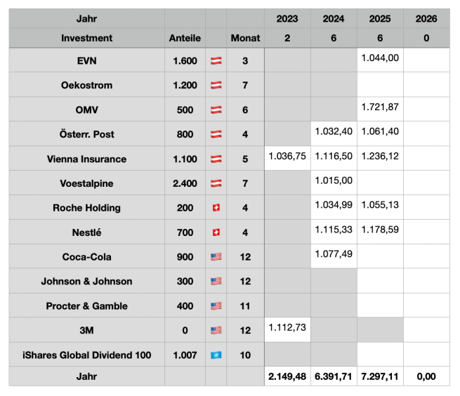 Die ersten 6 Jahresdividenden >1K für 2025 sind eingetroffen, der nächste war Oekostrom, lt. Hauptversammlung bis spätestens 01. Juli (tatsächlich noch am 30.6.) als Poster für Juli und Q3.